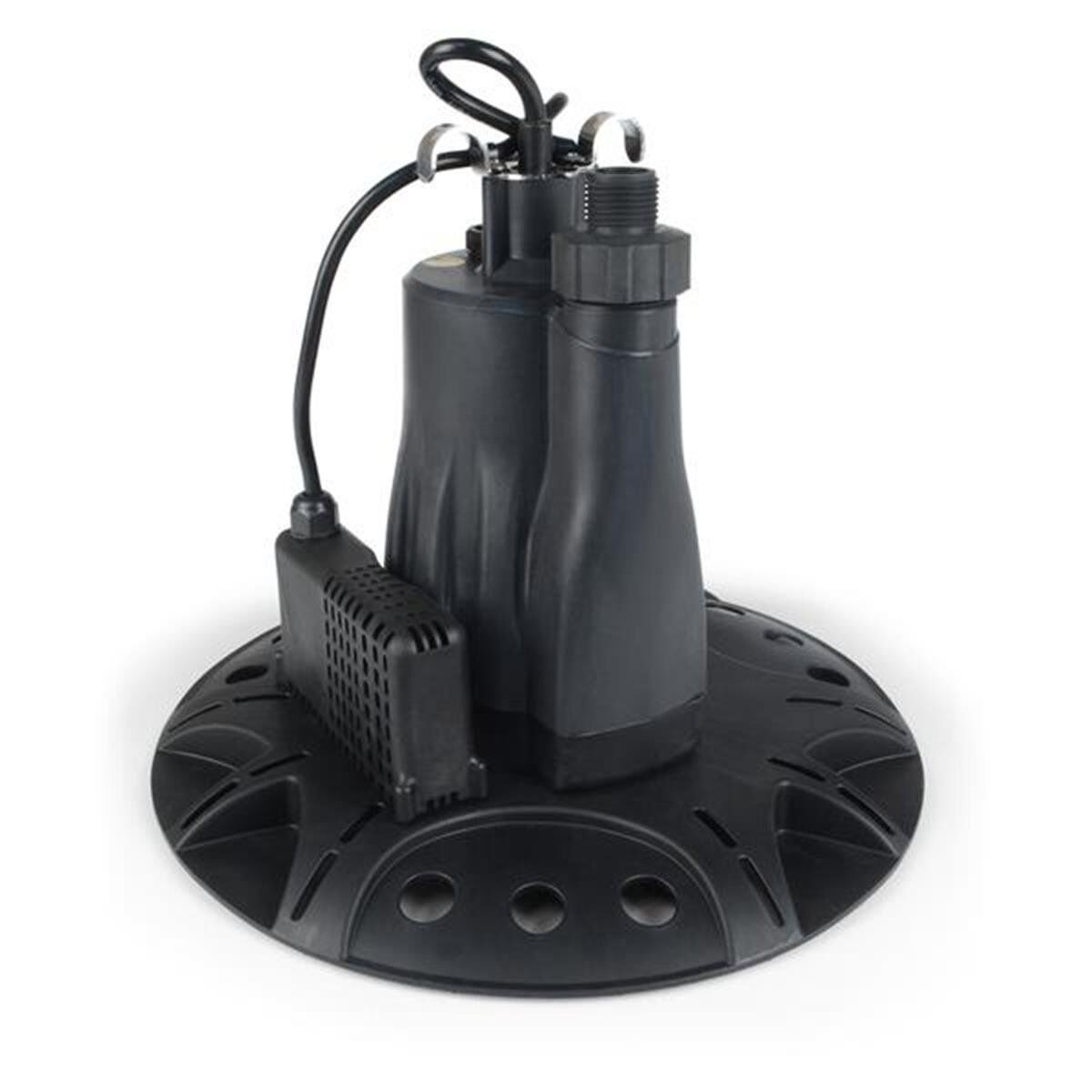 Pump features designed for pool covers with removable stabalization base for use in small areas. Will drain from flat surfaces down to 1/8″.