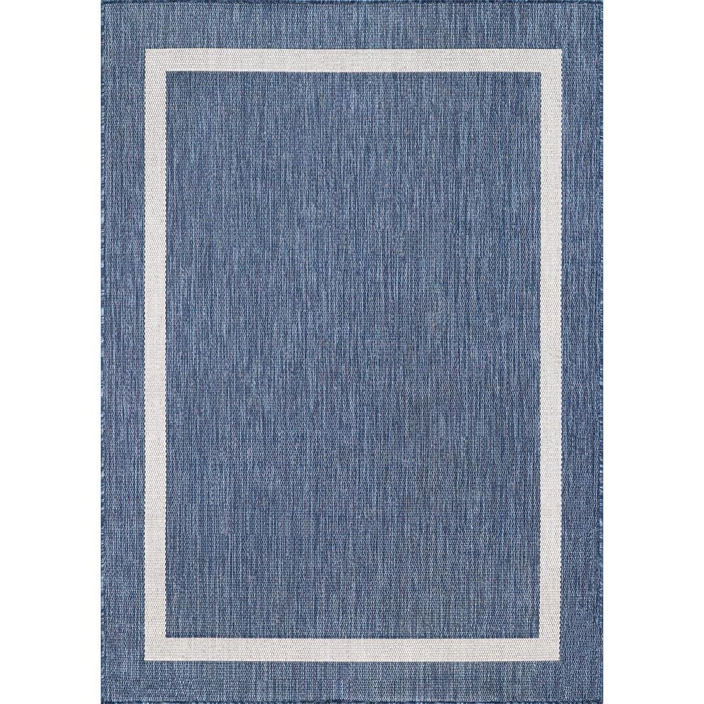Beverly Rug indoor outdoor rugs are available in various sizes; 4 ft. x 6 ft. area rug (3 ft. 11 in. x 5 ft. 11 in.), area rug 5 ft. x 7 ft. (5 ft. 3 in. x 7 ft.), 6 ft. x 9 ft. area rugs (6 ft. 7 in. x 9 ft.), large area rug 8 ft. x 10 ft. (7 ft. 10 in. x 10 ft.) and 6 ft. 7 in. circle rug. You can use our non shedding rugs wherever needed; either indoors such as living room, dining room, laundry room, bedroom, hallway, children playroom, or outdoors such as deck, patio, pool side, picnic, beach, garage, or guest lounges. These fade resistant indoor rugs has UV protection and offer environment protection with their eco-friendly and breathable material. The vibrant colors will not fade in the sun. Ideal for high traffic areas. With natural color options of beige, blue, grey and dark grey, this beautiful bordered area rug is perfect fit for your home. Color: Blue/White.