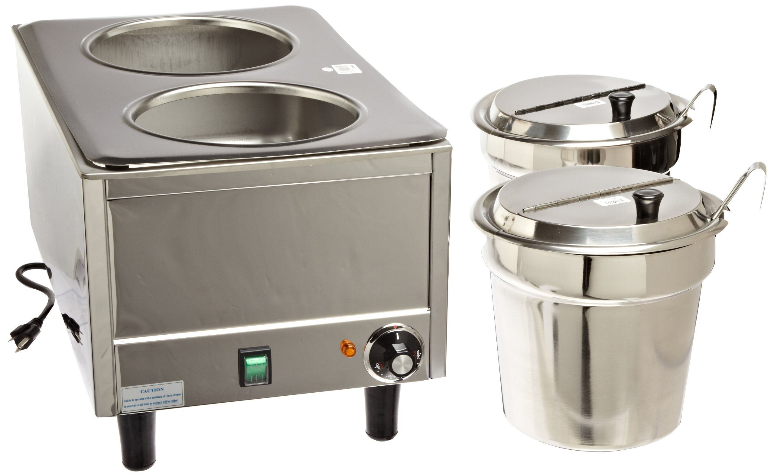 This Dual Well Warmer is ideal for soups, sauces and toppings. The twin 7 quart wells are the ideal for the toppings and it comes complete with the hinged Inset lids and two long-handled, 3 ounce, one-piece ladles. It is constructed out of 18/8 stainless steel and comes with Benchmark USA’s Three-Year Warranty for worry-free operation. The extra long legs provide easy access for cleaning. Whether you serve pasta sauces, ice cream toppings or soups you’ll appreciate that the pans, lids, ladles and adaptor plate are all removable for easy sink or dishwasher cleaning.