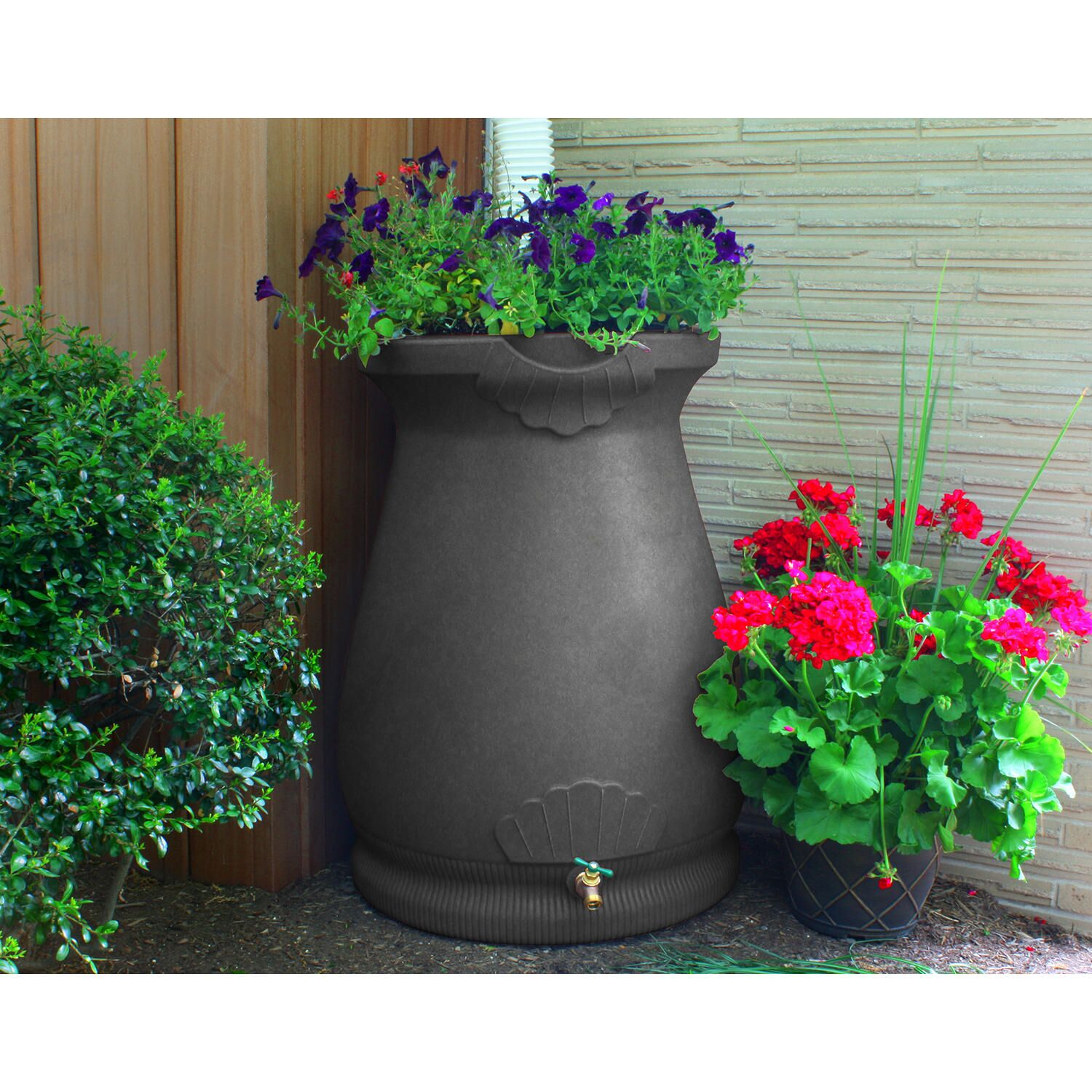 The Rain Wizard Urn is a thing of beauty as well as clever design. Constructed of thick, durable polyethylene resin, which holds up to the harshest elements, the exterior has the appearance of a terra cotta urn. Graceful lines, curves and garnishes make it an ideal accent piece for your home. The flat-back design optimizes space used and allows you to position the barrel close to walls or flat areas.The top is the only kind that acts as a planter space and also self-drains when excess water is present. There is also a channel built into the rim which diverts overflowing water to the front and away from the barrel and home foundation. Have peace of mind that you’re conserving water and giving your garden the best water it can get, devoid of harsh chemicals and rich in nutrients. And you can perform that conservation without sacrificing your home’s outer appearance with the very stylish and functional Rain Wizard Urn.*’Compare at’ price reflects verified online retail price of same or similar item.