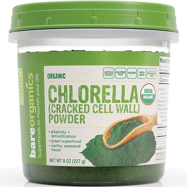 Supports energy, cleansing & vitality o Natural source of several important vitamins o Vegan, gluten free & certified organic o o BareOrganics Organic Chlorella (Cracked Cell Wall) Powder | 8 oz Powder o Sold by Swanson Vitamins