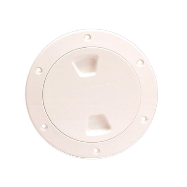 Beckson Marine 4″ Smooth Center Screw-Out Deck Plate – Beige. They incorporate a self-aligning center and an innovative gasket to assure a watertight seal. A back-up sealing wall leaves the plate watertight even if the gasket is removed. Deck plates are used for access to shut-off valves or back-fastenings inspection and clean out for tanks and compartments. A screw-out plate should be used in compartments where a change in air pressure due to temperature or oil canning can occur. Center: Smooth Color: Beige Package Contents: Beckson Marine 4″ Smooth Center Screw-Out Deck Plate Beckson Marine DP40-N: 4″ Smooth Center Screw-Out Deck Plate – Beige