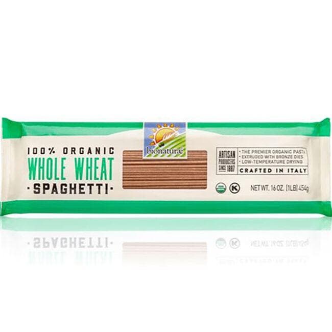 Crafted in Italy o 100% organic whole Durum wheat flour o Certifed organic o o Bionaturae 100% Organic Whole Wheat Spaghetti Noodles | 16 oz Package o Sold by Swanson Vitamins