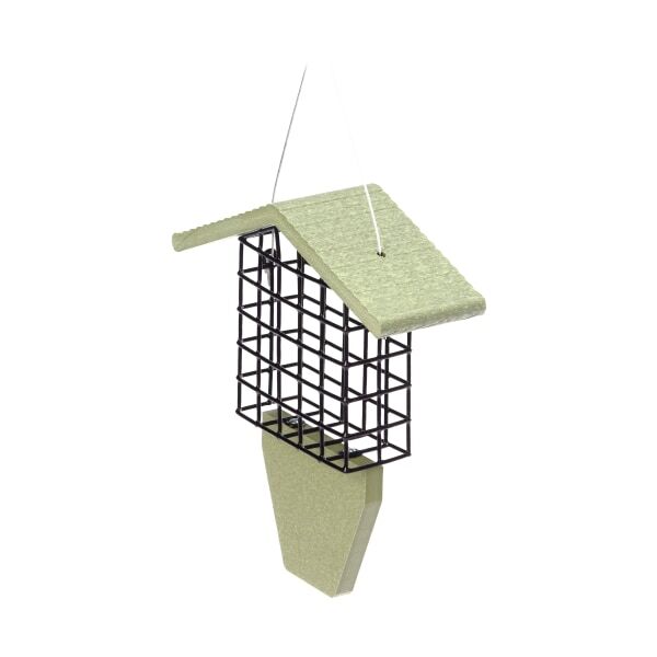 The Birds Choice Recycled 1-Cake Suet Bird Feeder with Tail Prop accommodates regular-sized birds, but it’s also great for woodpeckers and other bigger birds with long tail feathers. Not only does it look great, but this Birds Choice bird feeder is also made of recycled and durable poly-lumber material, which makes it eco-friendly and ensures that it will not crack, split, or fade. The vinyl-coated grid protects birds’ feet during feeding. This bird feeder may attract chickadees, purple finches, titmice, jays, nuthatches, bluebirds, woodpeckers, house finches, towhees, and more. Hanging cable included. 10″H x 8.75″W x 3″D.Manufacturer model #: GSTP. Accommodates bigger birds with long tail feathers Attracts a wide variety of small and larger birds Made of recycled poly-lumber material Will not crack, split, or fade Hanging cable included Holds 1 suet cake Vinyl-coated grid
