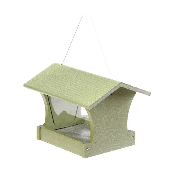Offer birds a safe, comfortable, and plentiful place to eat with the Birds Choice Recycled Plastic Medium Hopper Bird Feeder. The medium-sized hopper holds approximately 3.5 lbs. of seed, so there is plenty for local birds to dine on, and a mesh screen in the tray provides excellent drainage to keep seed dry. Durable recycled poly lumber construction resists cracking and fading for long-lasting performance. Stainless steel screws add strength. This hanging feeder comes ready to hang with an included cable. 11″L x 8.75″W x 8″H.Manufacturer model #: GSHF200. Medium-sized hopper holds approximately 3.5 lbs. of seed Mesh screen in tray provides excellent drainage Durable recycled poly lumber construction resists cracking and fading Stainless steel screws Ready to hang with included cable