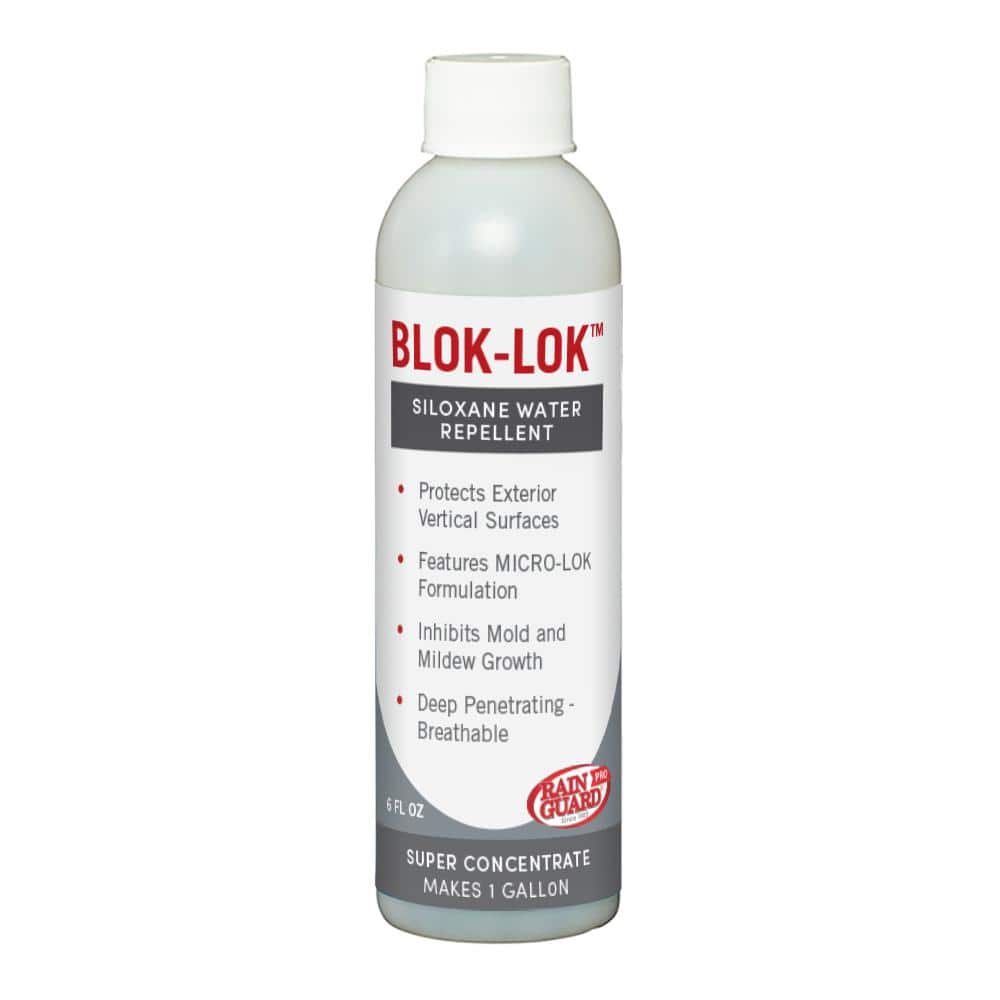 RainGuard Blok-Lok Siloxane Water Repellent is an invisible clear penetrating water repellent for vertical surfaces. It is non-yellowing, low odor, zero VOC, and non-toxic. It is formulated to not be affected by weathering, salt, dirt, freezing temperatures, UV light, and wind-driven rain, among many other damaging elements. It dries down to a clear, invisible finish that does not change the surface texture or color. Ideal for use on vertical uncoated/unpainted, interior/exterior surfaces such as: concrete, CMU blocks, brick, wood, porous natural and artificial stone, masonry, and color integrated or unpainted stucco.