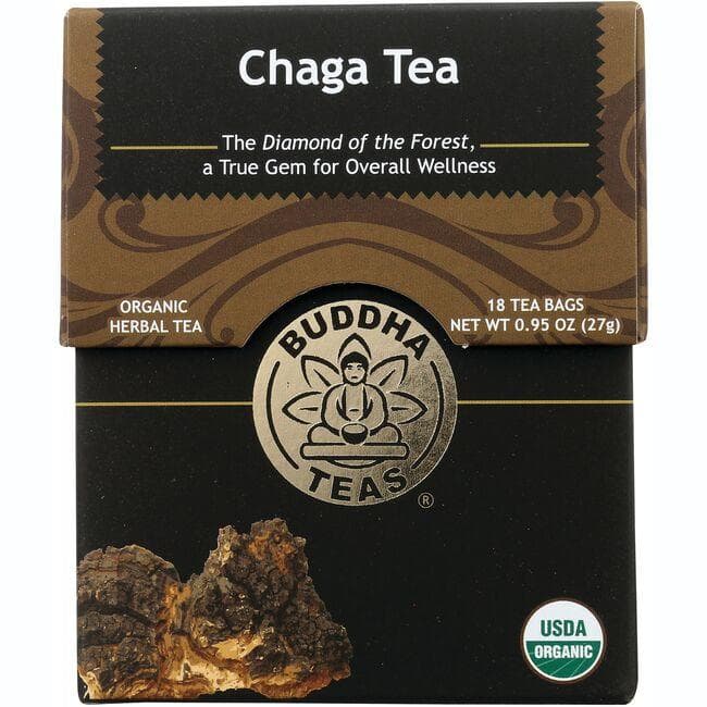 Organic herbal tea o Clean ingredients o Unbleached tea bags o o Buddha Teas Chaga Tea | 18 Bags o Sold by Swanson Vitamins