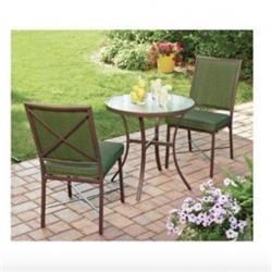 With the 3-Piece Patio Conversation Set of two arm chairs and side table are crafted from richly woven wicker in contemporary style. Gently curved arms and soft, supple cushioning provides for hours of comfortable relaxation. Tufted seat cushions are designed to withstand the elements and resist fading, mildew, and stains.