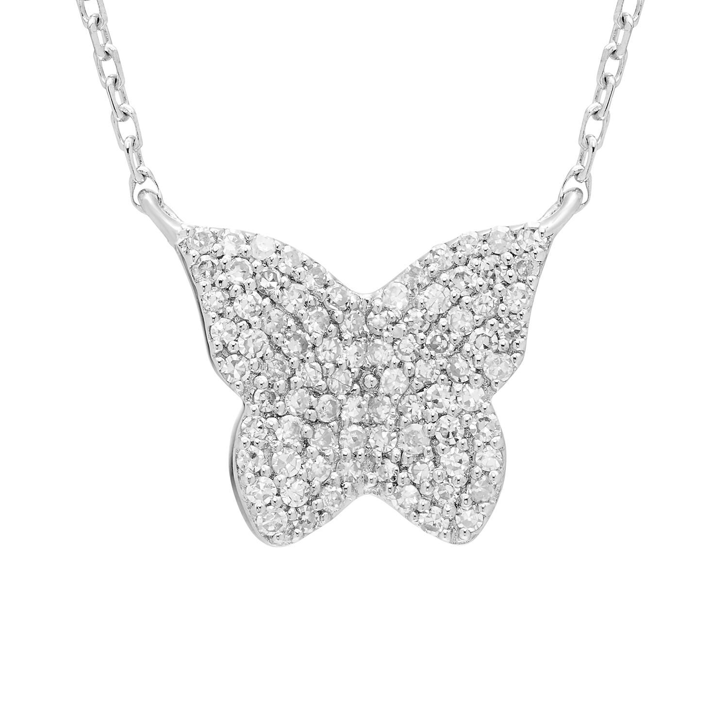 Natural Diamond Butterfly Necklace in Sterling Silver (.25 CT. T.W.) IGI CertifiedAdd a touch of sparkle and symbolism to your jewelry collection with this elegant natural diamond butterfly necklace in high-polished sterling silver. Featuring 82 genuine diamonds with a total weight of 0.25 carats, this IGI-certified piece celebrates transformation, freedom, and effortless beauty.The Meaning Behind the DesignButterflies have long represented growth, renewal, and resilience. Inspired by this power