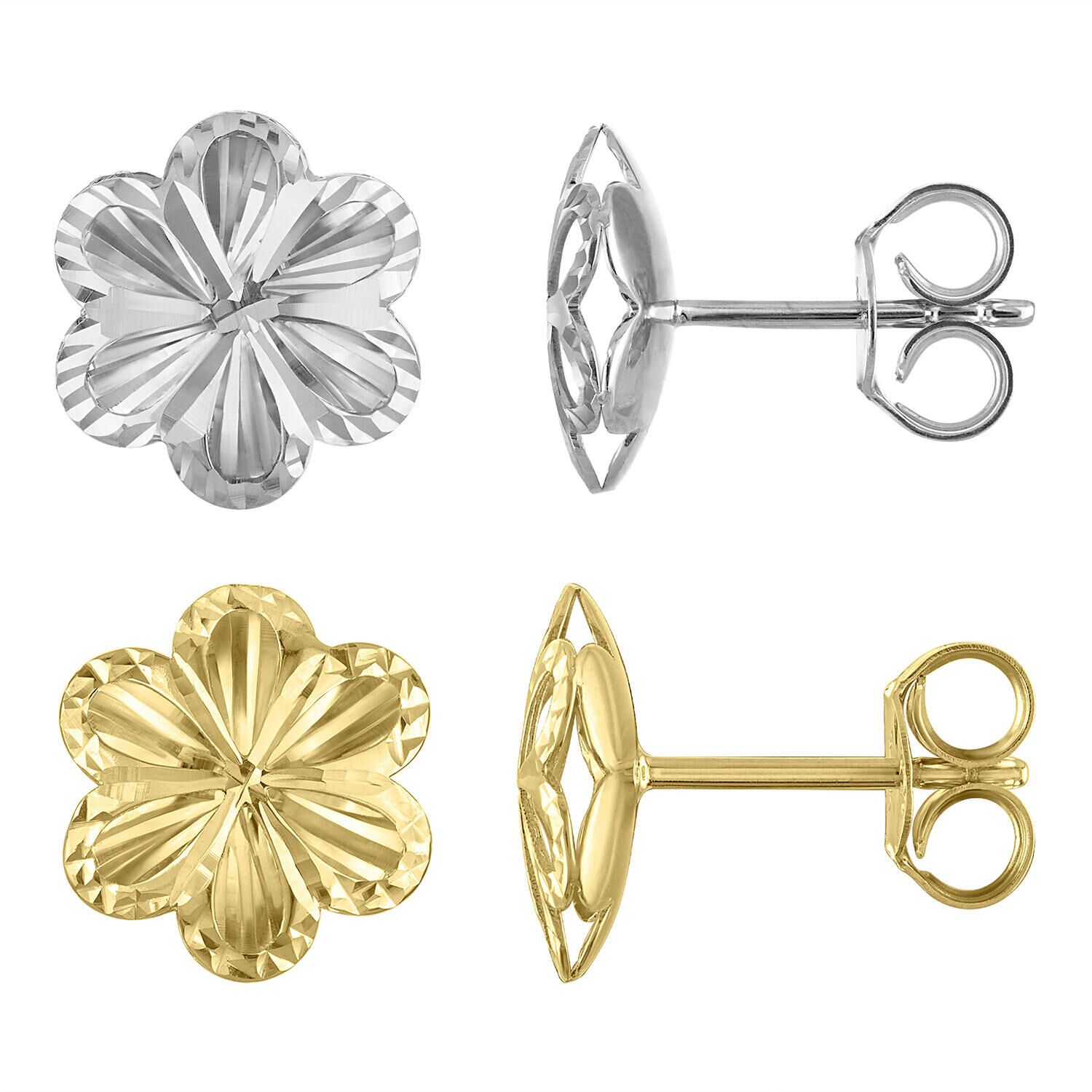 Diamond Cut Flower Stud Earrings in 14K Gold:- Yellow Gold