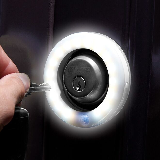 The Doorknob Safety Light is the rechargeable ring light that illuminates your entryway, hallway, garage or wherever you need a guiding light. Just attach it to your door with built-in magnets or the included adhesive tape. Choose motion-sensor mode or constant on mode. Great for seniors and those who live alone. Doorknob Safety Light (Set of 2)