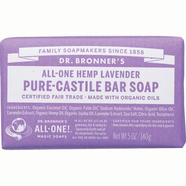 All-one Hemp Lavender pure castile soap o Made with Organic Oils o Fair trade o o Dr. Bronner’s All-One Hemp Lavender Pure-Castile Bar Soap | 5 oz Bars o Sold by Swanson Vitamins
