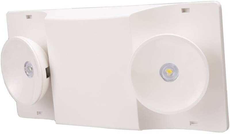 LED emergency light with 3.6 volt nickel cadmium battery back-up and AccuLED optics. Dual voltage input 120/277 VAC, 60Hz – 240 VAC capable with 48 hour recharge time. Brownout circuit, Low voltage disconnect, overload / short circuit protection. Injection molded, color stable, high impact polycarbonate. White textured finish. EZ hang feature for fast installation. Suitable for ceiling or wall mount applications. Universal J-box mounting pattern, keyhole mounting slots. UL924 Listed, damp location. Life Safety NFPA 101, NEC/OSHA.