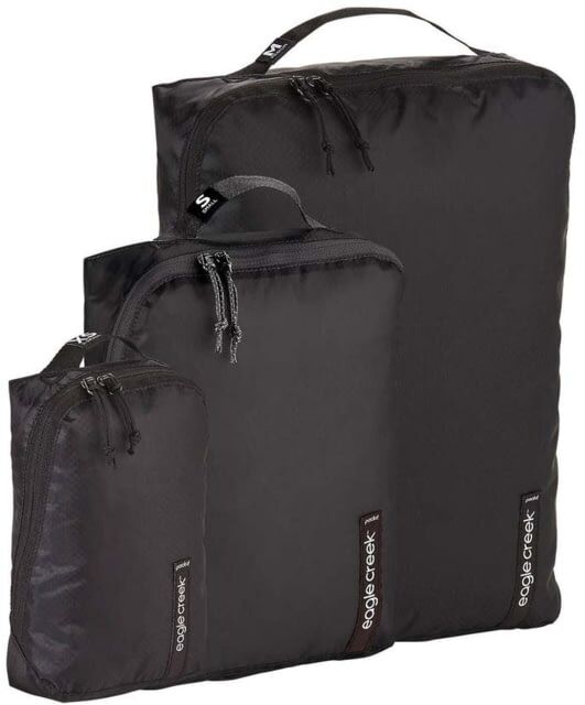 Eagle Creek Pack-It Isolate Cube Set Black Extra Small/Small/Medium. Isolate Cubes provide ultra-light organization and peace of mind that sweaty stinky clothes will stay contained. These packing cubes are a godsend for staying organized inside any travel or gym bag. Specifications for Eagle Creek Pack-It Isolate Cube Set: Manufacturer: Eagle Creek Size: Extra Small/Small/Medium Weight: 1.3 oz Application: Travel Capacity: 13 liters Volume: 795 cubic in Fabric/Material: Anti-Microbial Poly Ripstop Length: 14.25 in Width: 3.25 in Height: 10 in Last Chance: Yes Features of Eagle Creek Pack-It Isolate Cube Set This set offers a best-selling combo: Three sizes of Eagle Creeks packing cubes in an ultra-light fabric. Whats not to love? Innovative angled opening allows you to easily fold and stack your clothes or roll them up to maximize packing space Climbing rope-inspired cord pullers provide both an easy grab and fun outdoor aesthetic Self-repairing zippers (because we all overpack our cubes at some point) Water-resistant; hand wash only Package Contents: Eagle Creek Pack-It Isolate Cube Set Eagle Creek EC0A496D010: Pack-It Isolate Cube Set Black Extra Small/Small/Medium