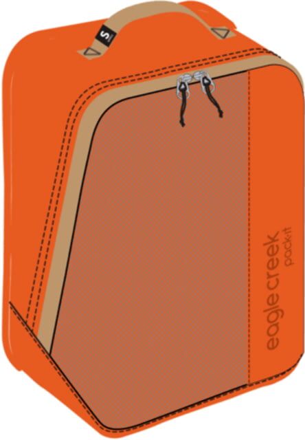 Eagle Creek Pack-It Reveal Cube Bag Mandarin Small. Pack your clothing in these must-have travel cubes and you’ll hands-down impress the folks at TSA security. Cubes provide compression organization and with that legit mesh window youll find everything youre looking for quickly. Dimensions: 13 x 18 x 3 in / 33 x 46 x 8 cm Capacity: 25 L / 1526 cu in Specifications for Eagle Creek Pack-It Reveal Cube Bag: Manufacturer: Eagle Creek Application: Travel Fabric/Material: Recycled 300D Poly/Recycled Double Diamond Poly Mesh Last Chance: Yes Features of Eagle Creek Pack-It Reveal Cube Bag Use Small Cubes to organize your T-shirts pajamas underwear socks and accessories Innovative angled opening allows you to easily fold and stack your clothes or roll them up to maximize packing space Full front-panel mesh window makes it easy to see whats inside Packing cube structure optimizes capacity for the maximum number of clothing items Convenient top carry handle for easy grab-and-go #5 self-repairing zippers feature climbing rope-inspired cord pullers All main body fabrics are 100percent post-consumer recycled and bluesign certified Water-resistant; hand wash only Package Contents: Eagle Creek Pack-It Reveal Cube Bag Eagle Creek EC040419820: Pack-It Reveal Cube Bag Mandarin Small