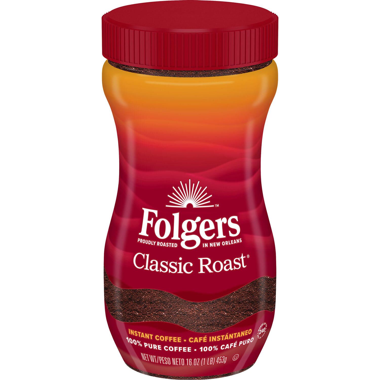 Get your day off to a great start with FolgersĀ® Classic RoastĀ® Instant Coffee Crystals. It’s the fastest way to enjoy the coffee you love. Offered in an easy-to-open jar, it’s the coffee of choice for millions.What’s in Folgers Classic Roast Instant Coffee Crystals?Folger’s classic roast is made of 100% pure coffee. It’s sourced from the finest beans and roasted in New Orleans for a rich flavor before being carefully packed and sealed for preserved freshness.Easy to MakeEnjoy a refreshing brew in minutes. Simply add hot water to a rounded teaspoon of Folger’s instant coffee for a classic cup. You can adjust the strength by increasing the number of spoonfuls. Savor the rich flavor. This jar makes up to 240 cups, enough to last for weeks.Refreshing Anytime DrinkTreat yourself to a refreshing beverage. It goes well with sandwiches, cookies, donuts and other pastries. Make a cup just before heading out to work or brew a cup in the middle of the day for a quick pick-me-up. Serve it to co-workers in the office to keep the conversation going, or relax at home with a steaming cup and your favorite book when it’s cold outdoors.Many Ways to Enjoy CoffeeEnjoy Folger’s coffee in different ways. You can drink it plain or add dairy or nondairy creamer for extra flavor. Sweeten the coffee crystals with sugar or any of your favorite sweeteners for delicious flavor in every sip.Does Folgers Classic Roast Instant Coffee Crystals come in other Forms?Folger’s instant coffee is available in individual serving packets and canisters. It also comes in convenient K-cup pods, ideal for stocking up the office break room.