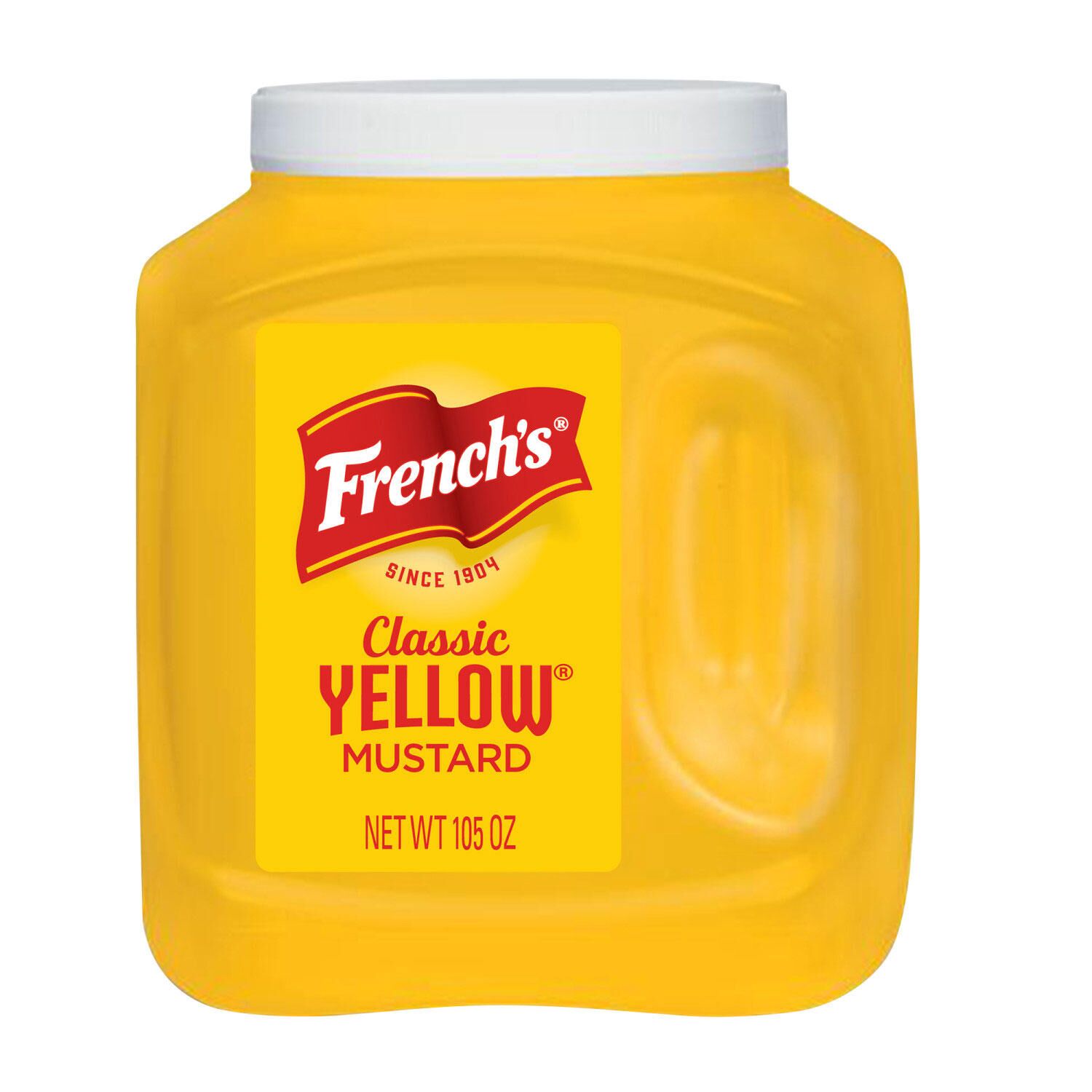 French’s Classic Yellow has remained the gold standard in mustard for over 100 years. Made with only #1 grade mustard seed, this popular product delivers unmatched flavor and quality for a consistently elevated dining experience. To create the signature tangy, creamy profile your customers enjoy, this yellow mustard is made using simple, high-quality ingredients sourced from a safe and controlled supply chain.These ingredients include high-quality mustard seed, distilled vinegar, turmeric, paprika and garlic powder. After the ingredients are sourced, certified master grinders work to ensure the perfect mustard grind every time.When you offer French’s Classic Yellow Mustard in your restaurant, you can benefit from its: Consistent flavor: Careful sourcing and processing methods help ensure French’s mustard delivers the same great flavor in every bottle to keep customers coming back for more.Pure formula: This yellow mustard does not include high-fructose corn syrup, gluten, dairy, peanuts, tree nuts or soybeans. The product is also kosher, so guests with a wide variety of dietary restrictions can enjoy your food.Visual appeal: How a dish looks is just as important as how it tastes. French’s Classic Yellow Mustard features a bright yellow color and glossy appearance that will look good on its own and add striking color when mixed with other ingredients. French’s Classic Yellow Mustard comes ready to use – no preparation necessary. For the best flavor and texture, shake the container well before use.French’s Classic Yellow Mustard is shipped and stored at ambient temperatures and has a shelf life of 12 months. Protect the product from freezing and store it with the cap tightly closed to reduce the risk of contamination and maintain maximum product quality. For the best flavor, keep the container in the refrigerator after opening.