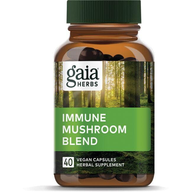 Blend of five organic mushroom extracts o Source of beneficial beta-glucans o Made from only fruiting bodies o o Gaia Herbs Immune Mushroom Blend Vitamin | 40 Vegan Caps o Sold by Swanson Vitamins