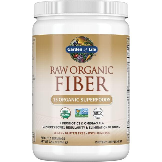 Garden of Life Raw Fiber is a natural source of raw fiber with 15 organic superfoods o Certified USDA organic o Vegan o o Garden of Life Raw Organic Fiber Supplement Vitamin | 9.45 oz Powder o Sold by Swanson Vitamins
