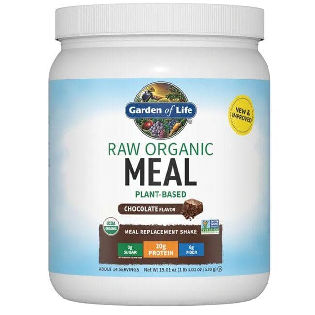 Beyond organic snack and meal replacement o USDA Organic o Real Raw Chocolate o Soy free o o Garden of Life Raw Organic Meal Plant-Based – Chocolate | 19.01 oz Powder | Weight Control o Sold by Swanson Vitamins