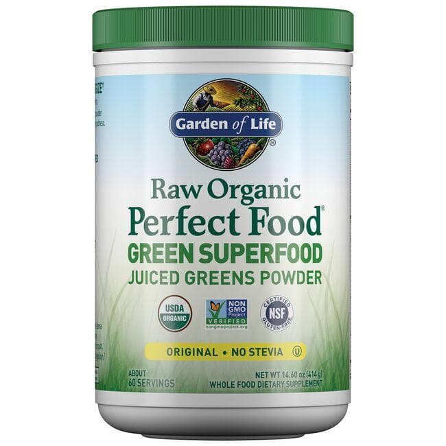 Made with 40 nutrient-dense greens, sprouts, fruits & veggies o For natural energy & healthy detoxification o Vegan; non GMO o o Garden of Life Raw Organic Perfect Food Green Superfood – Original Supplement Vitamin | 14.60 oz Powder o Sold by Swanson Vitamins