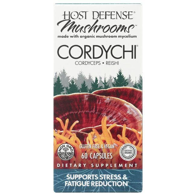 Made with U.S. grown organic mushrooms o Supports healthy stress response o Paul Stamets formula o o Host Defense Mushrooms Cordychi Vitamin | 60 Caps o Sold by Swanson Vitamins