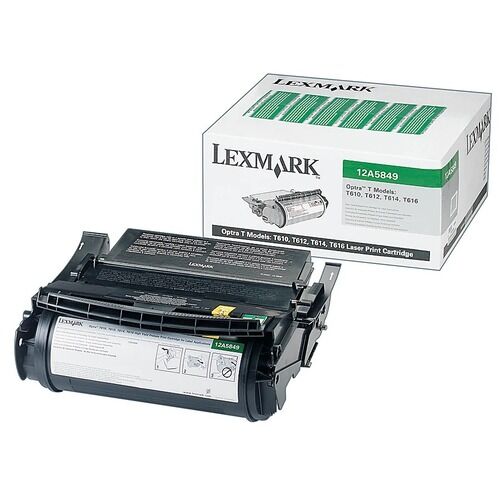 Laser print cartridges are specifically designed to assure optimal print quality with crisp, dark output. This print cartridge comes with oiled fuser wipers for customers that do extensive label printing. Optra T print cartridges are designed to work with Optra T printers (T610, T612, T614 and T616 Series) and will not work with other products. Cartridge yields approximately 25,000 pages at 5 percent print coverage. Lexmark Return Program Cartridges are sold at a discount, versus the prices of regular cartridges, in exchange for the customer’s agreement to use the cartridge only once and return it only to Lexmark for remanufacturing or recycling. 12A5849