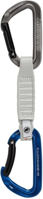 Mammut Workhorse Keylock 12 cm Quickdraw Straight Gate/Bent Gate Key Lock Grey-Blue 12 cm. The ergonomically shaped carabiner sits perfectly in your hand. Its generous geometry the ribbed grip zone on the straight gate and the improved key lock nose allow easier clipping and unclipping. The innovative profile construction makes it extremely robust and at the same time saves weight. The polyester sling provides a firm grip; a robust sling protector keeps the lower carabiner in place and reduces wear. A bright orange indicator shows that the sling and protector are attached correctly to the carabiner. Leaving you free to focus on climbing. Specifications for Mammut Workhorse Keylock 12 cm Quickdraw: Manufacturer: Mammut Color: Grey/Blue Length: 12 cm Carabiner Type: Keylock Carabiner Package Contents: Mammut Workhorse Keylock 12 cm Quickdraw Mammut 2040-02711-33275-74: Workhorse Keylock 12 cm Quickdraw Straight Gate/Bent Gate Key Lock Grey-Blue 12 cm