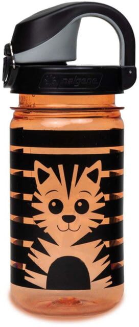 Nalgene Kids On The Fly Watter Bottle Sustain 12 Oz Tiger. It has a one-handed push button that allows for easy open/close and contains a locking bail for ultimate insurance against leaks. Sustain bottles are made from material derived from 50percent plastic waste. Each bottle is created from resin powered by next generation recycling technology that transforms plastic destined fo Specifications for Nalgene On-The-Fly Kids Sustain Bottle w/Graphic 12 oz: Manufacturer: Nalgene Fabric/Material: Tritan Renew Volume: 12 oz Weight: 4 oz Capacity: 12 oz Package Contents: Nalgene On-The-Fly Kids Sustain Bottle w/Graphic 12 oz