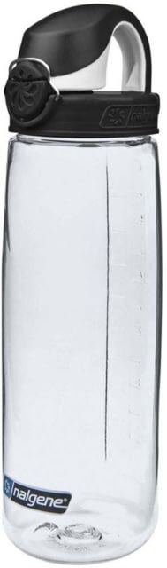Nalgene On-The-Fly Lock-Top Sustain Bottle 24 oz Clear with Black Cap 24oz. One-handed push button for easy open/close; locking bail for ultimate insurance against leaks. Sustain bottles are made with material derived from 50percent plastic waste. Each bottle is created from resin powered by next generation recycling technology that transforms plastic destined for landfills into high-performance bottles. Specifications for Nalgene On-The-Fly Lock-Top Sustain Bottle 24 oz: Manufacturer: Nalgene Fabric/Material: Tritan Renew Volume: 24 oz Height: 9.5 in Capacity: 24 oz Package Contents: Nalgene On-The-Fly Lock-Top Sustain Bottle 24 oz Nalgene 5565-3324: On-The-Fly Lock-Top Sustain Bottle 24 oz Clear with Black Cap 24oz