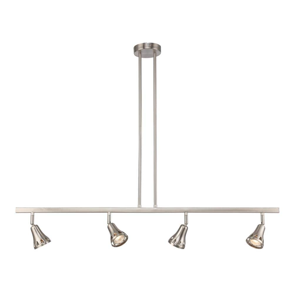 The Renew Collection from Bel Air presents sleek and timeless ceiling lights that are designed to bring functional illumination to your interior spaces while incorporating seamlessly into your existing home decor. The Renew 39 inch wide track light is the largest in the collection and offers a four light design. Each of the four track heads is mounted on a swivel to allow them to be moved and adjusted for customized, directional lighting. The piece is finished in brushed nickel, and includes a brushed nickel round ceiling plate for a semi-flushed mounting style. The height of this track light is adjustable with the included matching finish down rods. The Renew Collection is ideal for adding focused task light to kitchens, dining rooms, living areas, and home offices.