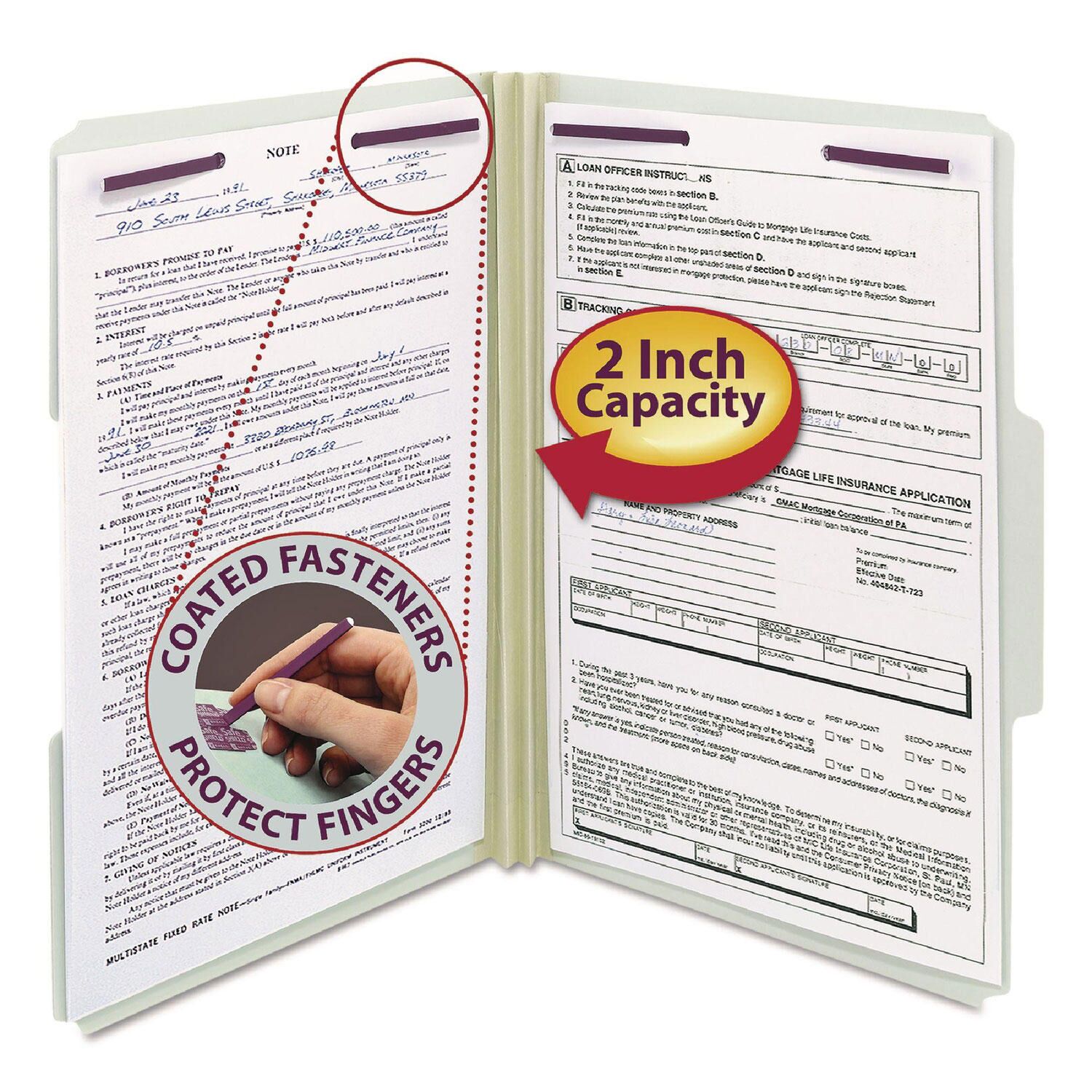 Protect your legal-size documents and fingers with Smead® patented SafeSHIELD® Coated Fastener Technology – the ultimate solution to fastener issues, including paper tears, finger cuts and excessive fastener crinkling. Made for large, bulky files that get plenty of use, these pressboard fastener folders are excellent for project files, real estate transactions, loans, legal files or anytime you need to keep large amounts of paperwork in sequential order for frequent reference. 1/2′ high tabs are 1/3 cut in assorted positions. Folders expand 2′ and offer 2′ prong, K-style fasteners in positions 1 and 3 (two per folder). Folders are made of heavy weight 25 point, gray/green premium pressboard stock with a high percentage of recycled material. Includes 25 legal size folders (14-5/8′ W x 9-1/2′ H), compatible with a wide range of paper. Proudly made in the USA. An eco-friendly choice with 100% recycled content and 30% post-consumer material and is SFI Sourcing Certified. A Rich Heritage of Innovation and Quality. A world-leading provider of solutions for efficient document management, Smead is a company well-known for its high quality, environmentally responsible products and innovative organizational systems. For more than a century, Smead has been committed to one purpose: Keeping You Organized!