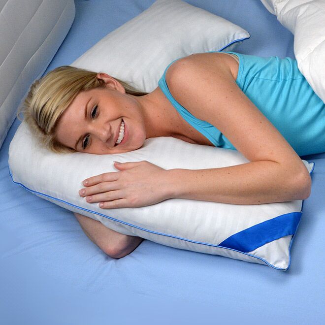 The L Pillow may have been designed for side sleepers, but you’re bound to find many, many more uses. It makes a great side and shoulder pillow, knee pillow, nursing/maternity pillow or a comfortable support for reading and watching TV. This premium pillow is stuffed with a soft fiber filling, and the supersoft cover features a subtle, striped pattern. Extra L Pillow Cover available at SharperImage.com (Item No. 203503).