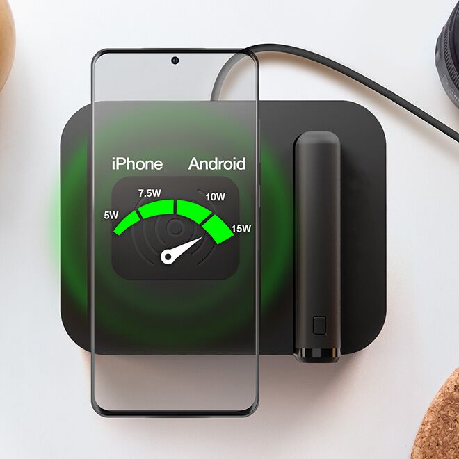 The Ultimate Charging Station is the all-in-one solution that charges up to 7 devices from a single outlet. The universal charging base combines a sophisticated wireless fast charger plus a 4-port USB charging hub enhanced with Power Delivery and Fast Charge Technology. A removable 4,000mAh portable power bank charges two more devices via USB. With 65 Watts of total rapid charging power, this practical power solution is perfect for households, schools and offices with multiple devices.
