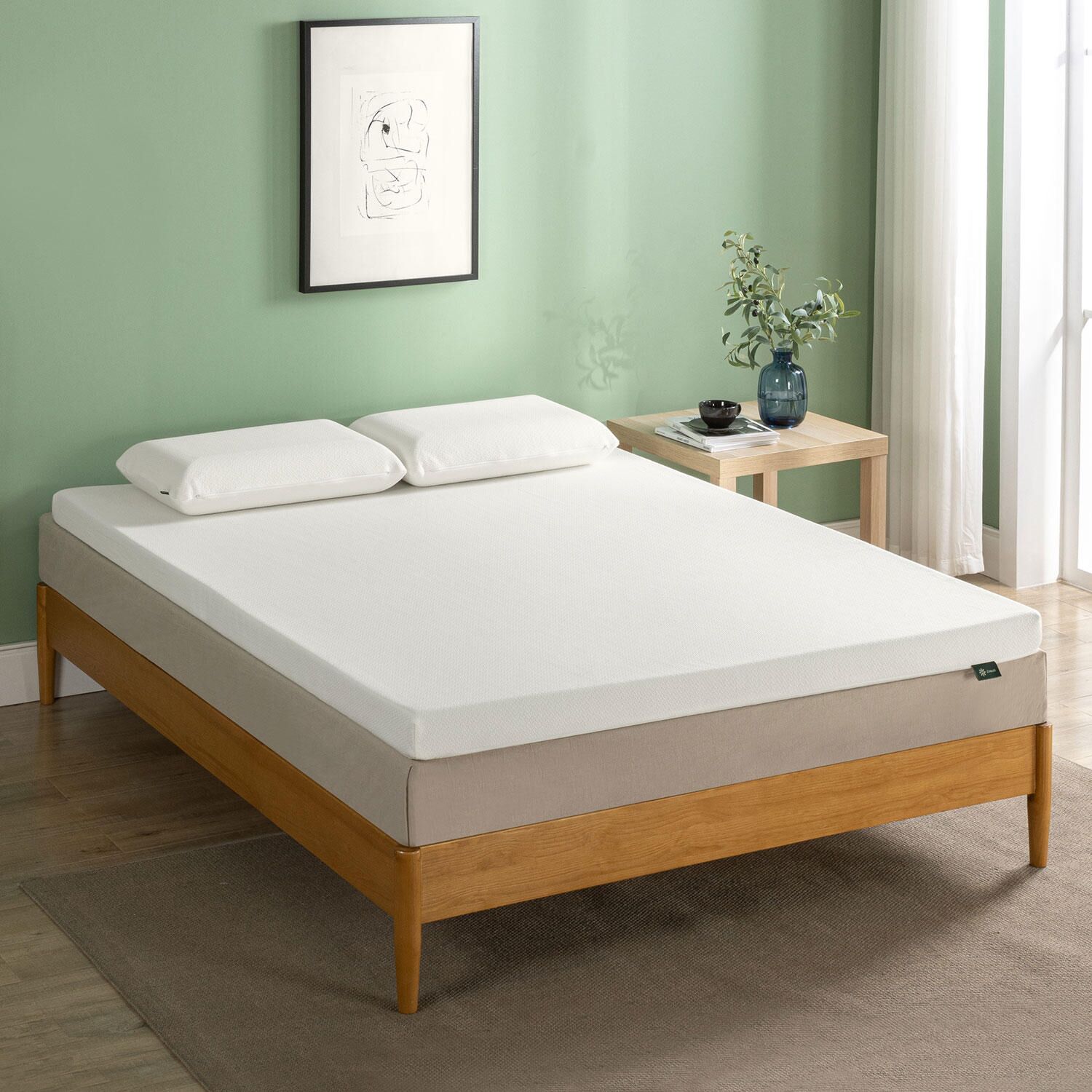 If your existing mattress could use a bit of a pick-me-up, look no further than the ZINUS Night Therapy 3″ Green Tea Mattress Topper with TENCEL™ Blend Cover. An effortless solution to breathing new life (and comfort!) into your existing mattress, this memory foam topper is designed from the inside out to help you fully relax and sleep better than ever.Made with a generous 3″ of enveloping memory foam, the Green Tea Mattress Topper with TENCEL™ Blend Cover is designed to add exquisite softness to your mattress while conforming to your shape in any sleep position. By supporting your every curve, this topper helps you awake free of those pesky morning aches and pains. Highest quality CertiPUR-US® certified foam is also free of harmful chemicals, so you can lie down with total confidence.The ZINUS Night Therapy 3″ Green Tea Mattress Topper also includes a removable and washable cover made with a TENCEL™ blend fabric derived from easily renewable, all-natural fibers. Sustainable TENCEL™ provides exquisite softness, plus moisture absorption to keep you dry and comfortable as you snooze. This mattress cover also features an anti-slip bottom to ensure it doesn’t slide around on the mattress surface. Simply add the topper before putting on your fitted sheet, and voila! Your bed will feel instantly soft, comfortable, and refreshed.This topper is available in twin, twin XL, full, queen, king, and Cal king sizes so any bed can benefit from its premium goodness! We compress and roll it efficiently into a compact box that shows up at your doorstep. Simply open it up and let your new topper fully expand for 48 to 72 hours before use. A 5-year worry-free warranty is included with your purchase, so you’ll rest with complete peace of mind from the moment you lie down.